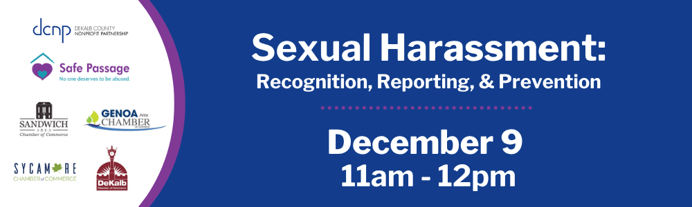 Join us on December 9 for this webinar on sexual harassment in the workplace organized by the DeKalb County Nonprofit Partnership (DCNP) and presented by Safe Passage.